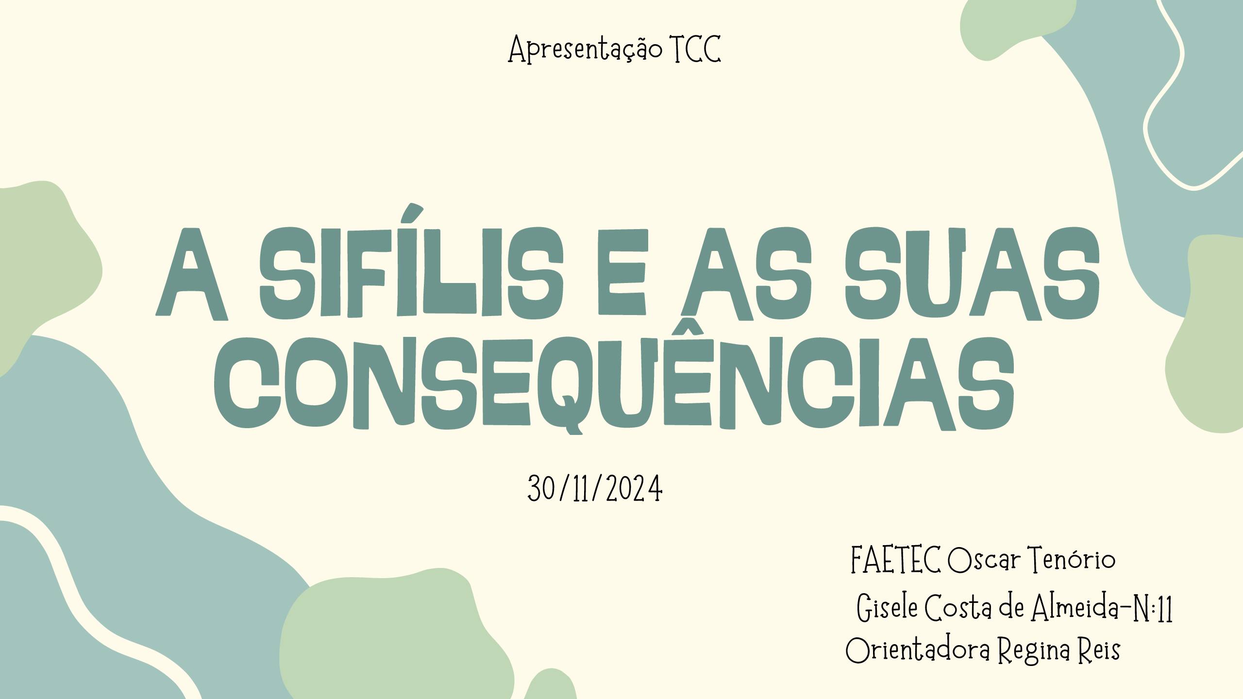 A sífilis é uma doença bacteriana que pode ser transmitida pelo contrato sexual, produtos sanguíneos, durante a gravidez,partos, amamentação e requer um tratamento sério pois tem consequências graves.A sífilis tem cura mas,se não for diagnóstico e tratada pode causar complicações. Para previnir a sífilis é fundamental o uso dos preservativos.As feridas podem desaparecer mesmo sem tratamento sem deixar cicatriz. Entretanto,a pessoa desenvolver a doença silenciosamente até que surgem manchas pelo corpo.